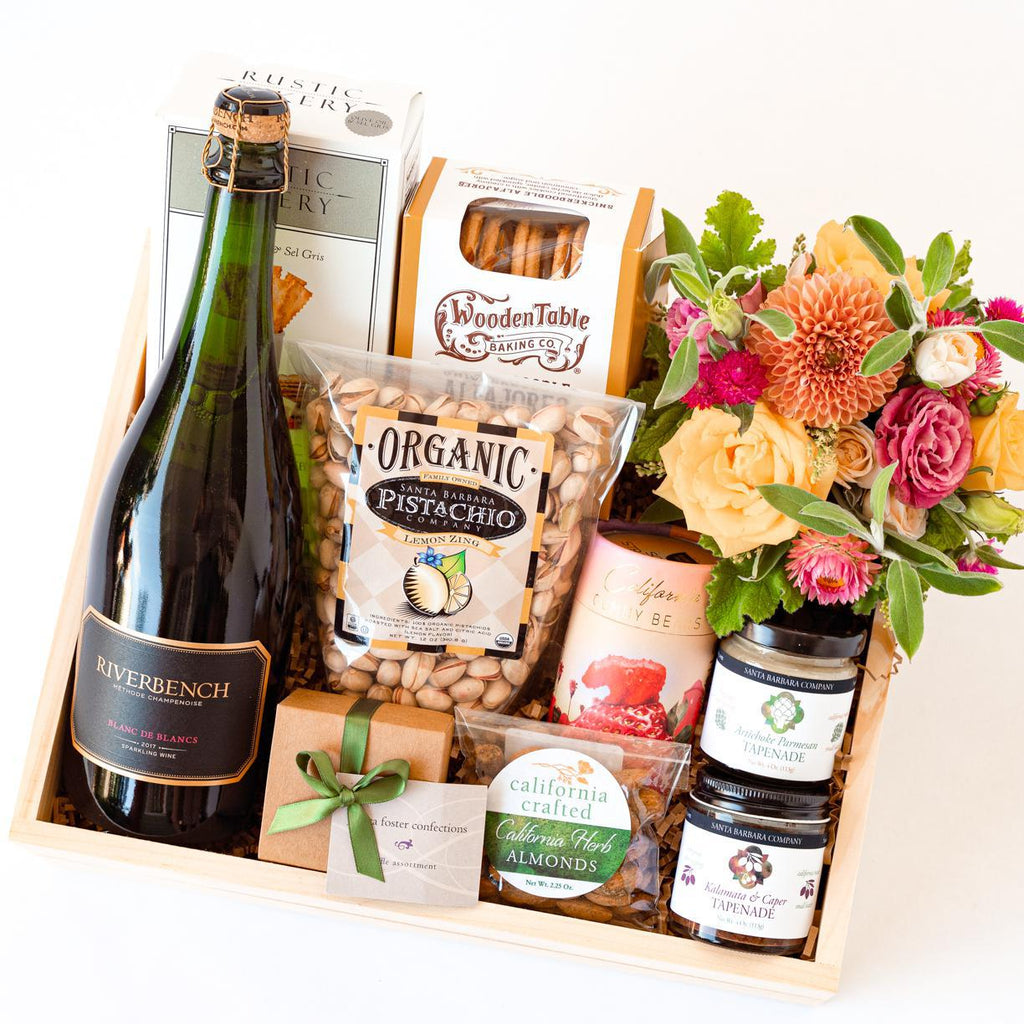 Celebration Gift Box With Flowers Hand Delivery In Santa Barbara Santa Barbara Company